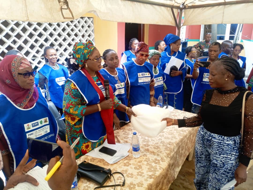 The wife of the Executive Chairman of Egbeda local government, Alhaja Monsurat Abiola Sanda has flagged off the distribution of 2025 Insecticide-Treated net and decorated as the NET AMBASSADOR of Egbeda local government.