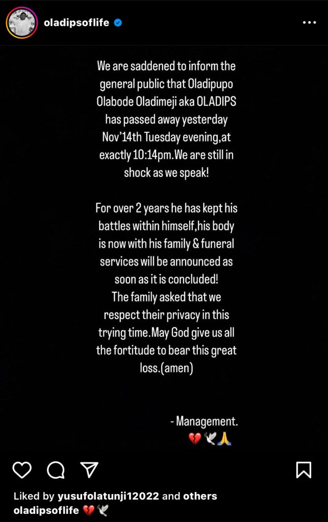 BREAKING: Nigerian rapper, Oladips is dead