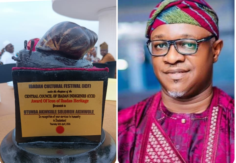 The award was presented by the President-General of CCII, Niyi Ajewole, during the Business Dinner organised as part of activities marking the ongoing Ibadan Cultural Week 2026, held at Obafemi Awolowo Stadium (formerly Liberty Stadium) axis, Airport Road, Ibadan.