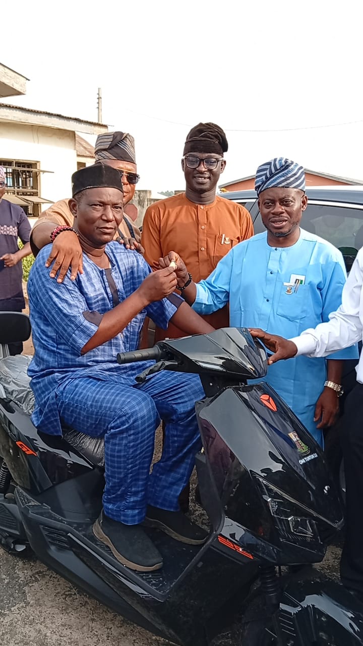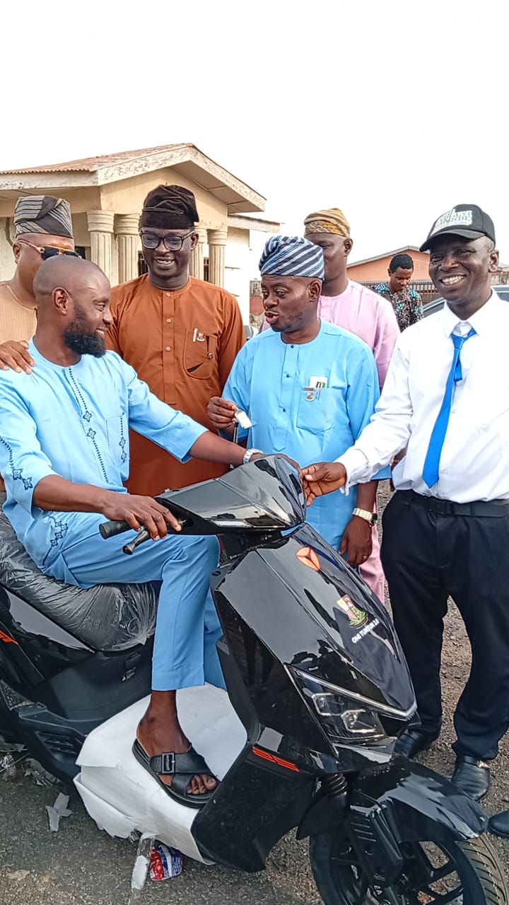In a strategic move to strengthen grassroots mobilization and reward party loyalty, the Executive Chairman of Egbeda Local Government, Hon. Sanda Sikiru Oyedele, on Thursday presented electric motorcycles to the eleven ward chairmen of the Peoples Democratic Party (PDP) in the council area.