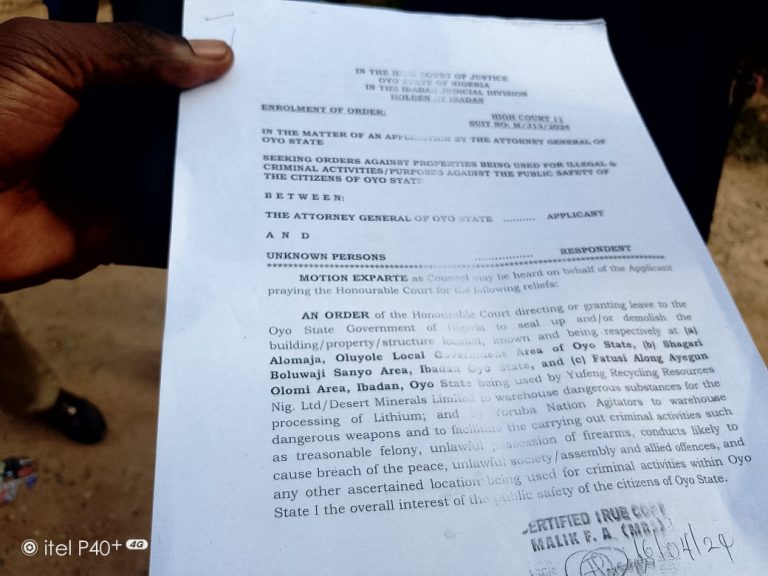 Similarly, the state government has also demolished an illegal lithium processing factory Idi-Ayure road, Oluyole local government axis of Ibadan. It was also gathered that the state government has secured a court order to that effect.”