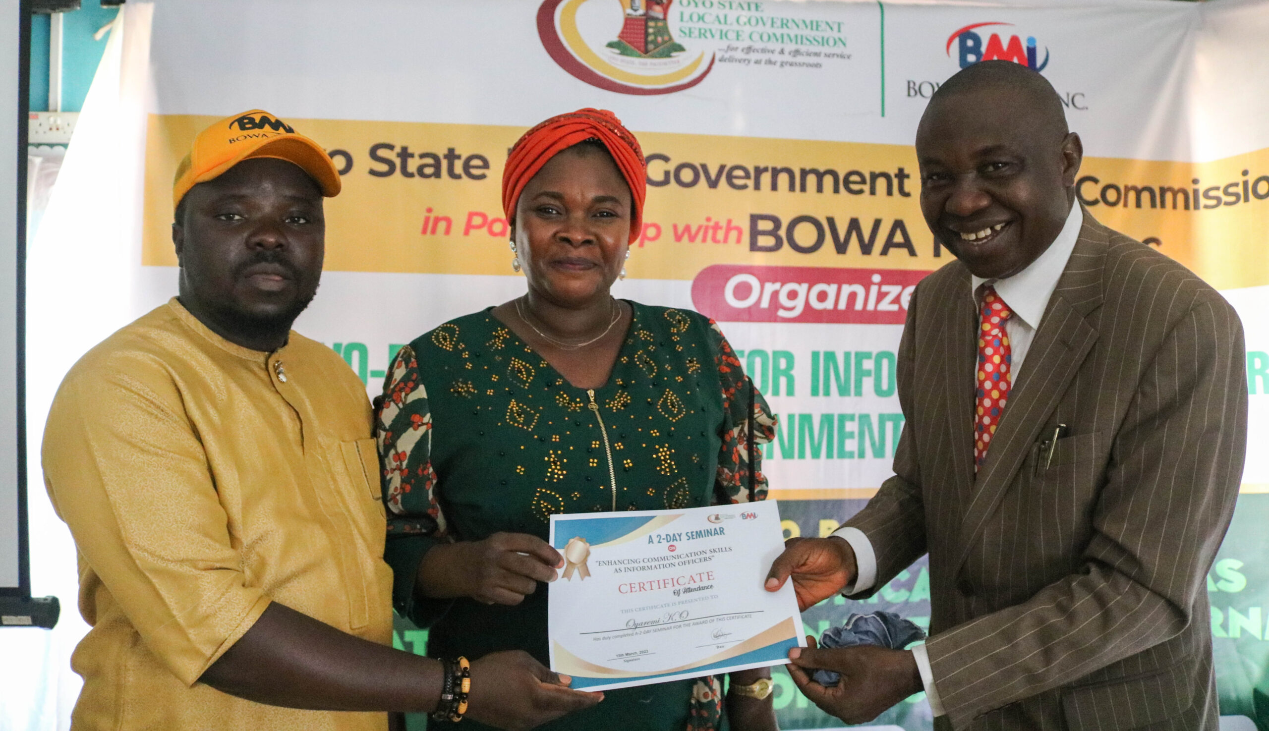 The two-day training facilitated by the Oyo State Local Government Service Commission in conjunction with Bowa Media Incorporated, for 35 local government information officers is titled: “Enhancing Communication Skills