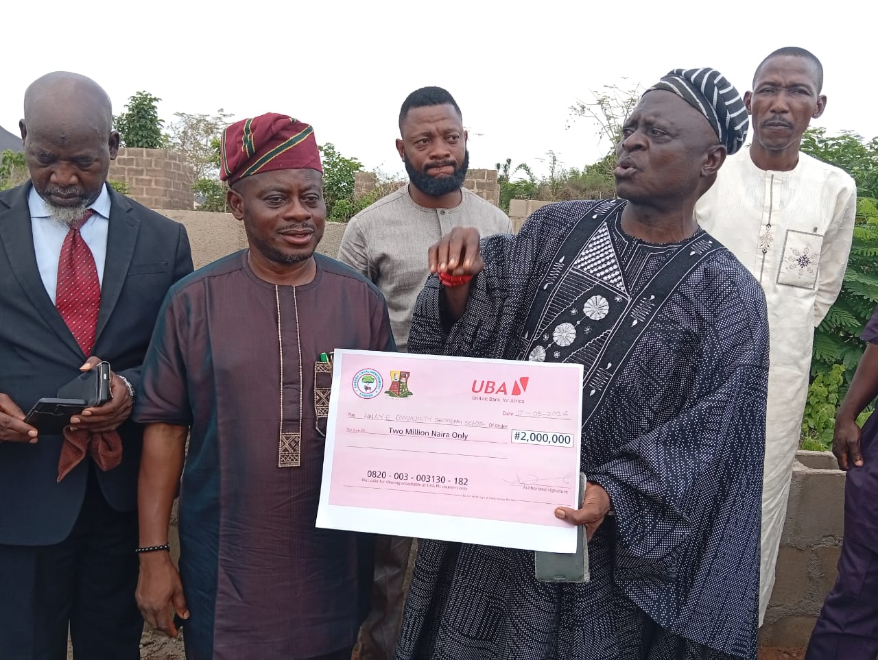 The Council Boss presented the sum of (#2,000.000) two million naira cheque to the Awaye Community Development Association as part of an education intervention and community development support initiative. The financial support is aimed at strengthening educational infrastructure, promoting academic excellence, and fostering sustainable development within the Awaye community.