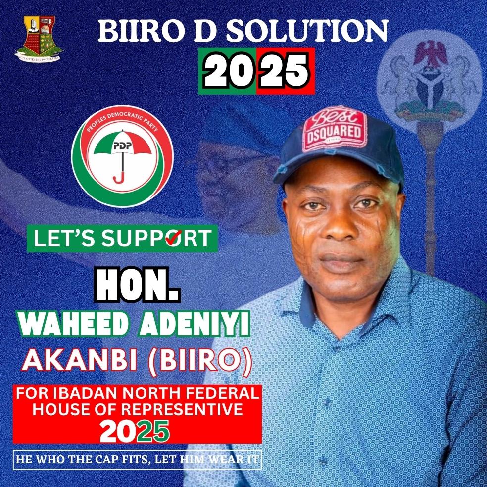 Considering his impressive credentials and the enthusiasm he has generated, Hon. Waheed Adeniyi Akanbi (Biiro) is an excellent choice to become the flag bearer of the PDP in the forthcoming bye-election in Ibadan North Federal Constituency.
